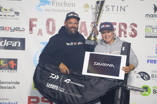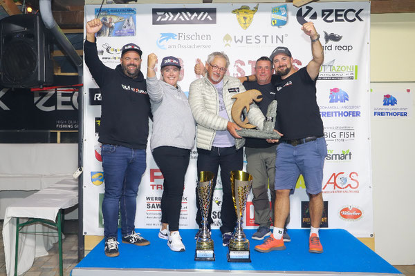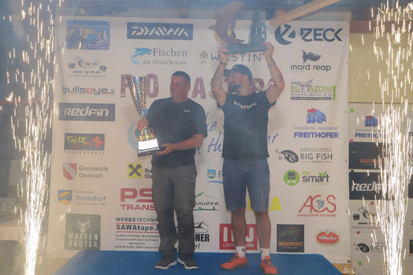 Zum 3ten mal konnte sich Angelcenter Salzburg den Titel holen. Am ersten Tag in Führung, ließen sie am 2 ten Tag nichts mehr anbrennen und sicherten sich mit weiteren Top Fischen den Sieg. Auch wieder in hervorragenden Form, zeigten sich das Fischende Ehepaar die Londersons ihre Stärke und See Kenntnis und krönten sich somit zum VizeMeister!!!